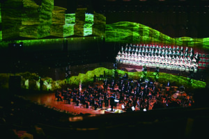 공연의 후반부는 합창이 장식했다. 국립합창단과 청년교육단원의 연합이었다. 윤학준의 가곡 ‘나 하나 꽃 피어’가 시작되자 조명이 사그라들고 무대 전체가 프로젝션맵핑으로 채워졌다. 가사의 내용을 따라 풀밭이 점점 붉은 꽃으로 뒤덮이는 연출은 기억에 남을 광경이었다.