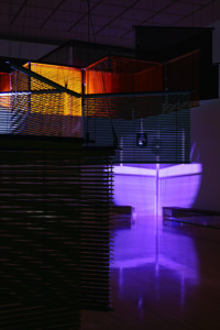 양혜규 블라인드는 공간을 나누면서도 동시에 연결하는 이중적인 장치다. 겹겹이 쌓인 블라인드 큐브들은 윤이상의 핵심 작곡 기법인 ‘주요음(Hauptton)’이 지닌 울림 및 잔향과 시각적으로 닮아있다. 관람객이 보는 각도에 따라 투명함과 불투명함이 교차하도록 설계해, 두 악기가 은하수를 가로질러 대화하고 소통하는 여정을 공간의 깊이감으로 표현했다.
