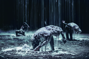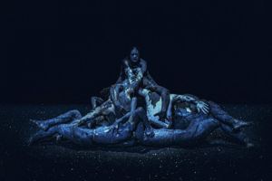 일본의 조각가 나와 코헤이(1975~)와 벨기에 출신의 안무가 다미앵 잘레(1976~)의 만남은 시각예술과 무용의 물성을 직접 활용한 방식 중 가장 화제다. 2015년 첫 협업작 ‘베셀’을 시작으로 ‘플래닛[방랑자]’(2021) ‘미라지’(2025)까지, 두 사람이 만나 만들어낸 퍼포먼스의 언어는 분명한 개성을 가지고 있다. 박제된 사슴에 크리스털 구슬을 붙여 만든 ‘픽셀 시리즈’로 유명한 나와 코헤이의 작업 방식은 움직이는 무용수의 몸에 고체·액체·기체 등의 다양한 물성이 닿는 모습을 보여주는 것으로 확장된다. 마치 무용수가 실시간으로 조각되는 것 같아 보이기도, 또 동시에 해체되고 있는 것처럼도 보인다.