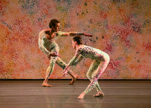 이 작품의 음악을 쓴 작곡가 모턴 펠드먼은 머스 커닝햄(1919~2009)과의 작업 과정에 대해 이렇게 말했다. “딸의 웨딩드레스가 결혼식 당일 아침에야 완성된다고 가정해 보라. 그런데 만약 그 드레스가 디올 제품이라면?” 불안함을 견디고 흔쾌히 당일에 드레스 수령을 하고 싶어질지도. 머스 커닝햄은 공연 전까지 안무와 무대, 음악을 개별적으로 작업해 합쳤다. 이 독특한 협업 방식에도 그와 오래 작품을 선보인 화가 라우션버그(1925~ 2008)의 점묘화 기법 의상이 두드러지는 이 작품은 1958년 초연됐다.