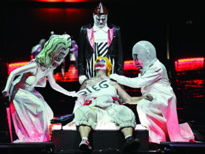 로메오 카스텔루치(1960~)는 군더더기를 덜어낸 무대에 상징적인 조형물이나 출연자의 특수한 행위를 내세우며 서사를 이끈다. 그가 빚는 무대 전반은 미니멀하지만, 도발성으로 가득하여 관객의 시선을 끌곤 한다. 흑과 백의 색채 대비를 통해 물들어가는 군중을 잉크로 뒤덮는 파리 오페라 ‘모세와 아론’(2015)의 연출은 그의 도발성이 가장 잘 드러난 무대다.