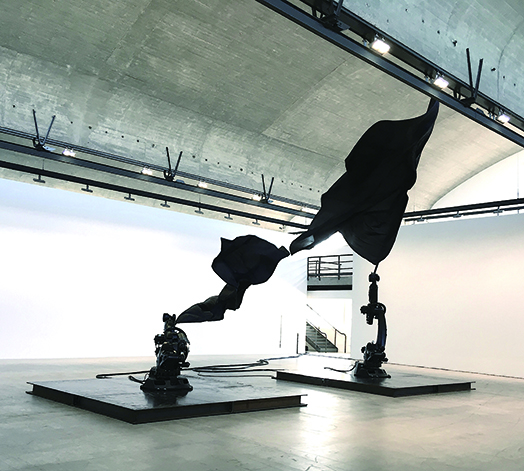 안무가 본인의 말에 따르면 “본능적으로 위협적이면서도 매혹적이고, 섬뜩하면서도 경이로운” 작품. 8톤에 달하는 판 위에 고정된 산업용 로봇은 기계 소음을 내며 13m 반경까지 움직이는 거대한 검은 깃발을 움직인다. 움직임의 방식은 다양하다. 사람이 수행할 수 없는 규모의 움직임, 그러나 그 깃발 사이의 공기까지 느끼는 것이 이 ‘안무가의 작품’ 감상법.